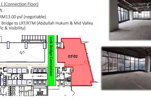 ‹ › 1/6 Office for rent in Jalan Bangsar, Kuala Lumpur Kuala Lumpur, Kuala Lumpur RM 24,349 / month Office Few Office for Rent at Mercu 2, KL Eco City.Size details and layout plan as per photo attached..Level 23ABuild up 7782 sqftBare unit with ceilingAsking Rental RM 7.50 psf.Level 1Build up 1873 sqft & 4221 sqftPedestrian Link Bridge to LRT/MRT Abdullah Hukum & Mid Valley City (High Traffic & Visibility)Asking Rental RM13.Level 3ABuild up 3348 sqft & 3282 sqftOpen CeilingAsking Rental RM10.00 psf.Please... Call